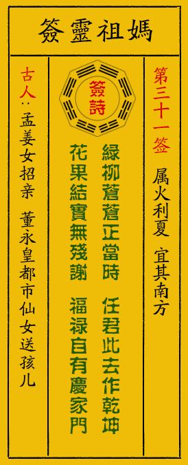 - 妈祖灵签第31签