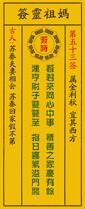 诗曰 | 看君来问心中事、积善之家庆有余、运亨财子双双至、指日喜气溢门闾。 |