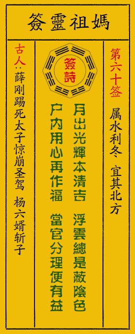 诗曰 | 月出光辉本清吉、浮云总是蔽荫色、户内用心再作福、当官分理便有益。 |